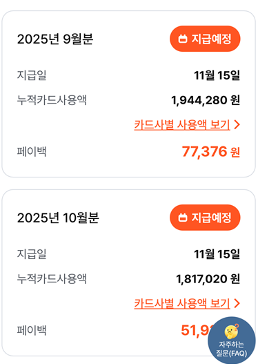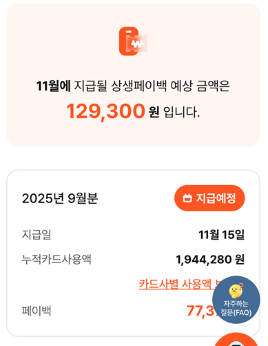 상생페이백을 통해 실제로 환급받을 수 있는 금액은 소비 증가분의 20%이며, 월 최대 10만 원, 3개월간 총 최대 30만 원까지 가능합니다. 예컨대 2024년 월평균 카드 사용액이 100만 원이고, 2025년 10월 카드 사용액이 150만 원이라면 증가분 50만 원의 20%인 10만 원이 환급됩니다. 또한 첫 달 지급 결과, 415만명에게 총 2,414억원이 지급되었고, 1인당 평균 지급액은 약 5만 8천 원 수준이었습니다.