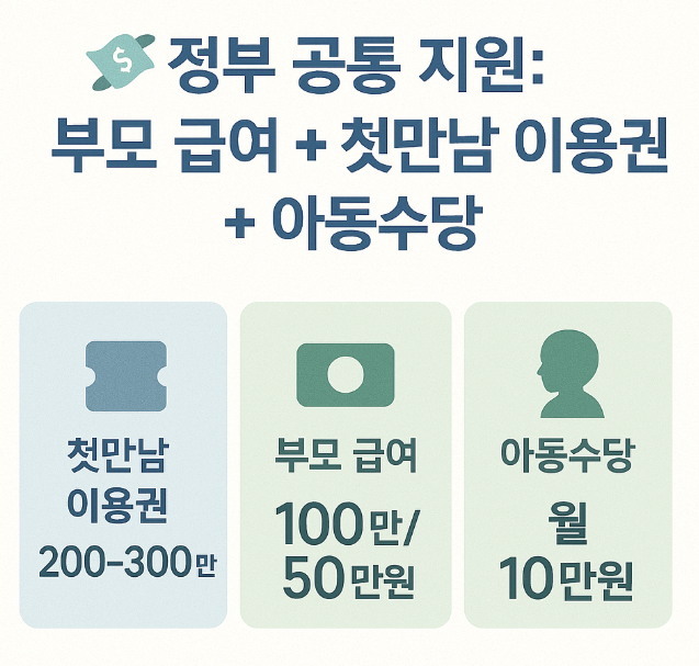 | 첫만남 이용권 (바우처) | 첫째 **200만 원**, 둘째 이상 **300만 원** | 출생일로부터 1년 사용 |