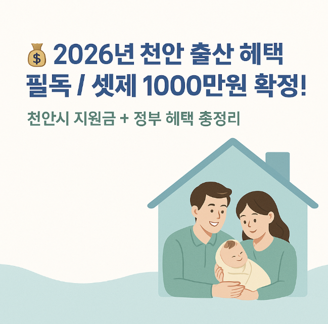 💰 2026년 천안 출산 혜택 필독! 셋째 1000만원 확정! 천안시 지원금과 정부 혜택 총정리